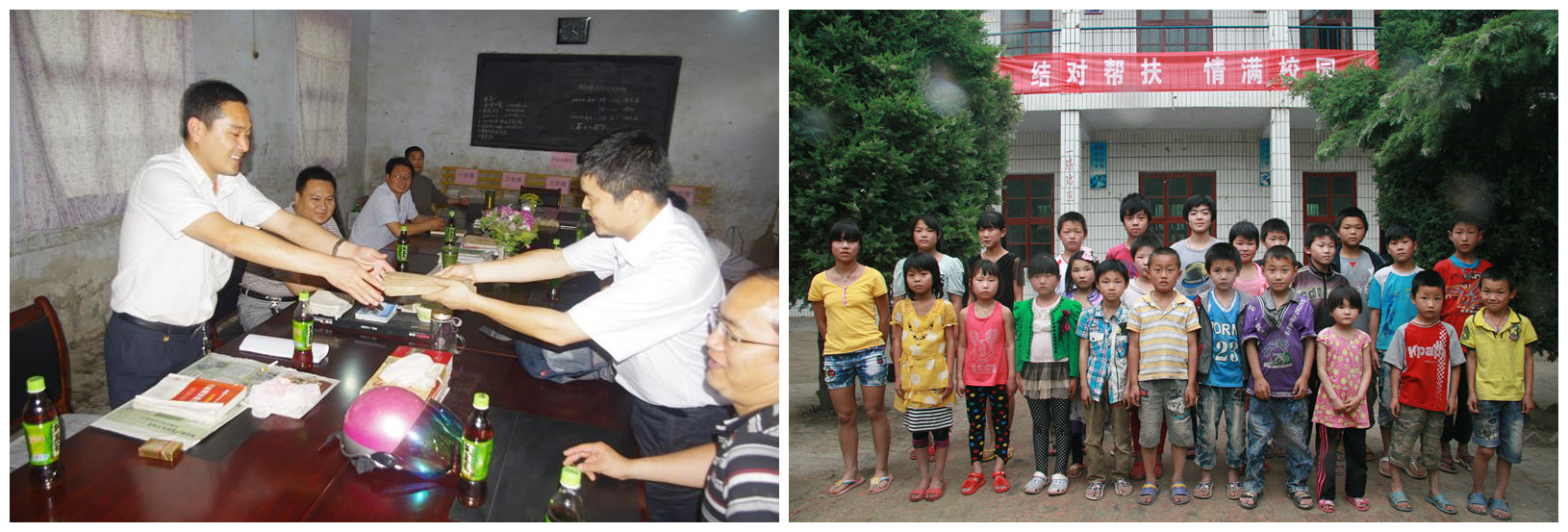 圖為江濱水處理公司愛(ài)心助學(xué)代表親自為河南商丘夏邑八里小學(xué)孩子們送去助學(xué)金