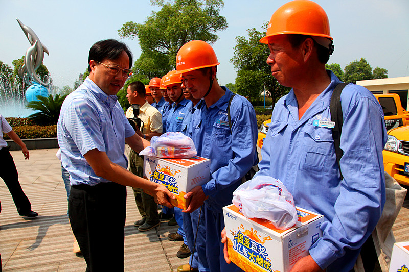 7月12日上午,縣委書記何加順、副縣長周樹森等領(lǐng)導(dǎo)在水務(wù)集團(tuán)董事長倪阿泉、總經(jīng)理單寶子等領(lǐng)導(dǎo)陪同下來到公司慰問在高溫下作業(yè)的供水一線職工,親手把防暑降溫慰問品送到他們手上,并再三叮囑有關(guān)人員落實(shí)好夏季高溫時(shí)段的防暑降溫措施,確保一線職工身體健康。