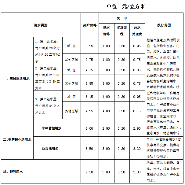 柯橋區(qū)自來水水價收費標(biāo)準(zhǔn)
